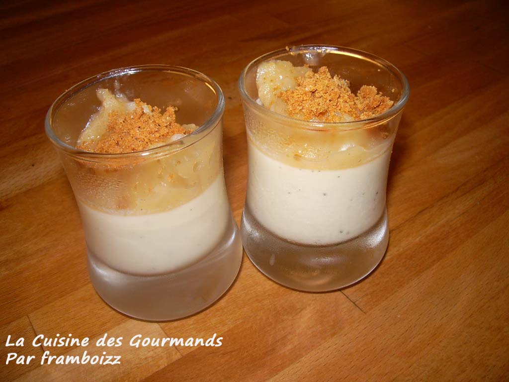 Une fois refroidie (la panna cotta), rajoutez la compote pommes/poires par-dessus, rajoutez du spéculoos émietté et servez bien frais